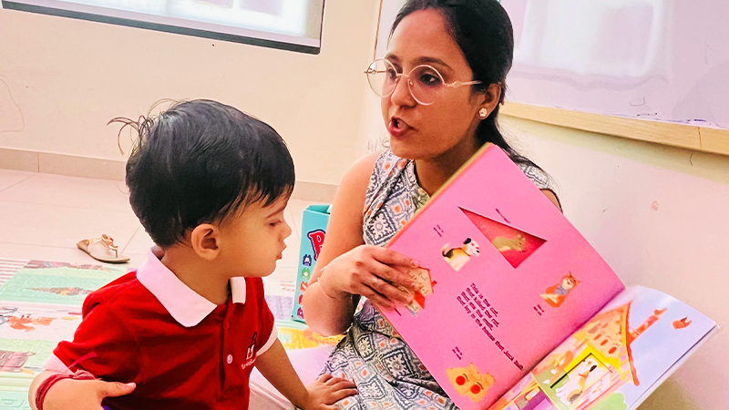 Maple Bear Canadian Preschool Gurugram excels in Language Development and Acquisition. Children naturally learn English through immersion methodology, engaging in listening, speaking, reading, and writing. This Canadian-designed program fosters bilingualism, offering significant linguistic and cognitive advantages. Experience comprehensive literacy development and confident English language acquisition at our preschool in Gurugram.